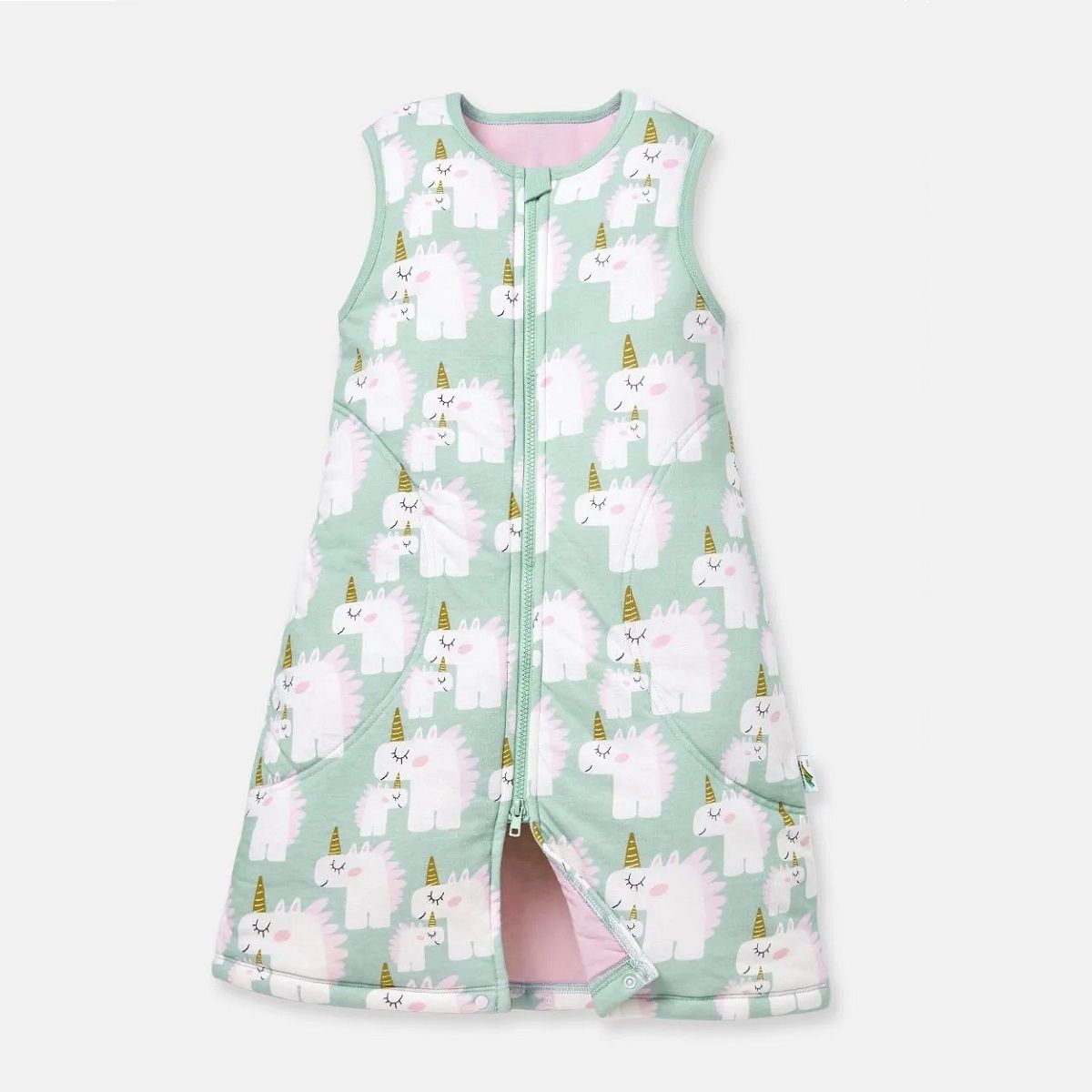 Go beyond tog with this sleeping suit to end night sweats for good! Adopts the advanced German clima fibre to actively regulate the baby's skin temperature, giving bub sweat-free sleep. The outer layer is made with 100% premium cotton for an incredibly soft touch and great breathability. Fillings possess antibacterial-zinc oxide element which is hypoallergenic all year round, keeping the baby's skin healthy, especially ideal for babies with sensitive skin. The feet-out design helps to avoid tripping over and sweaty feet, it is also suitable to wear while in the car seat. Featuring a durable zipper that is easy to use for parents.