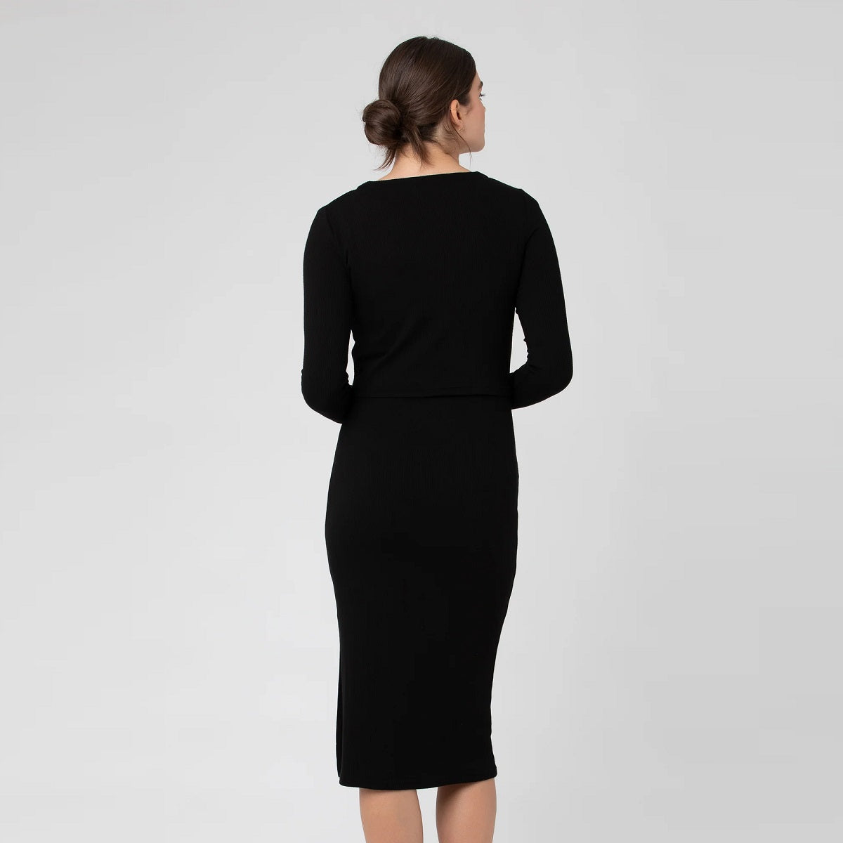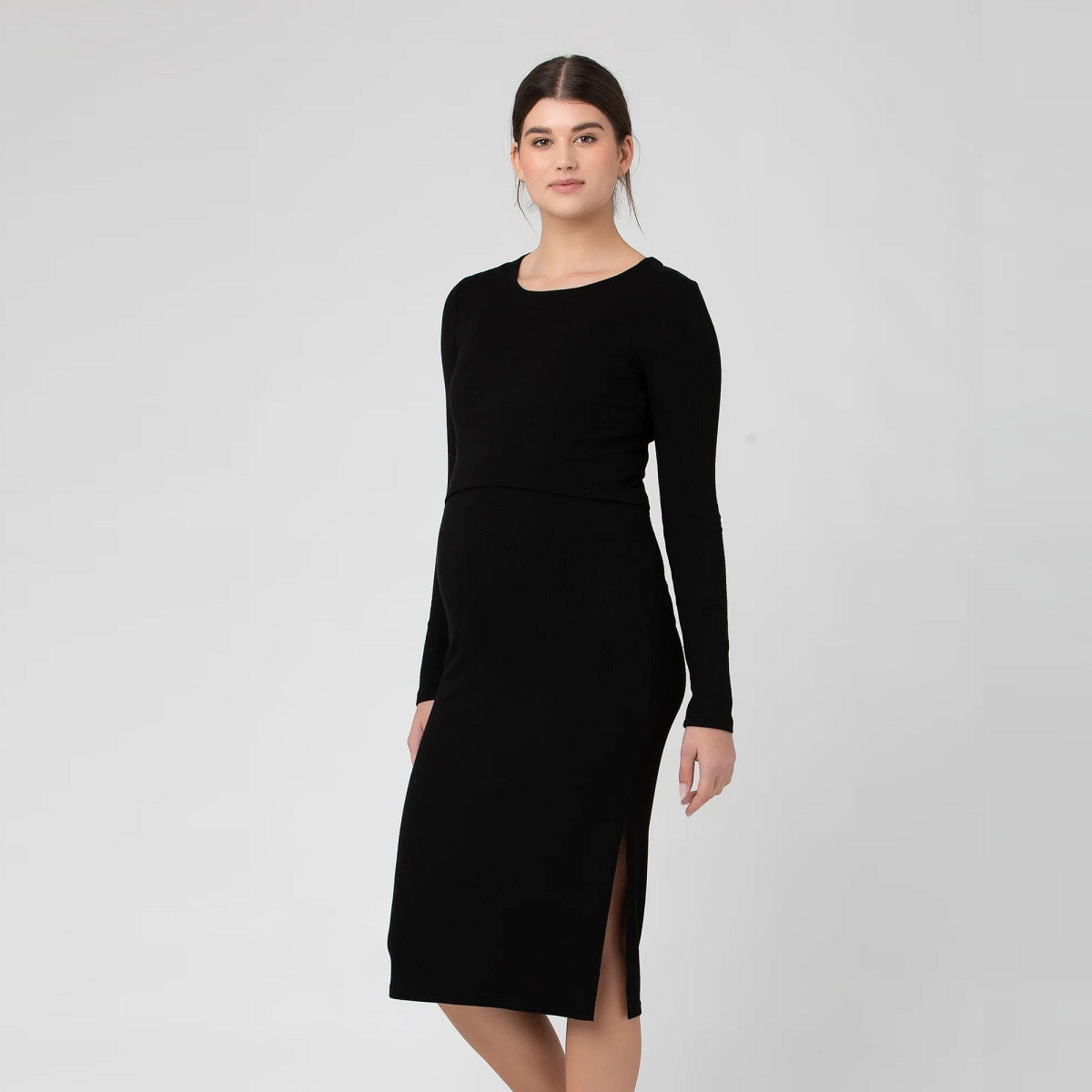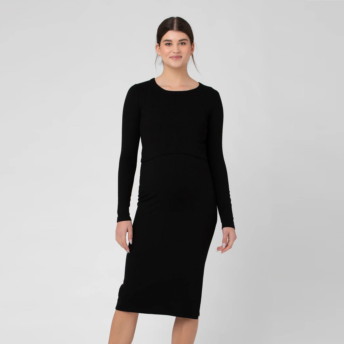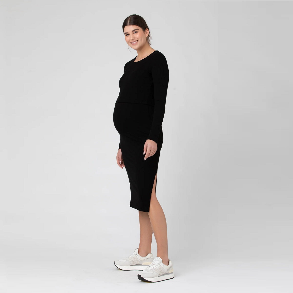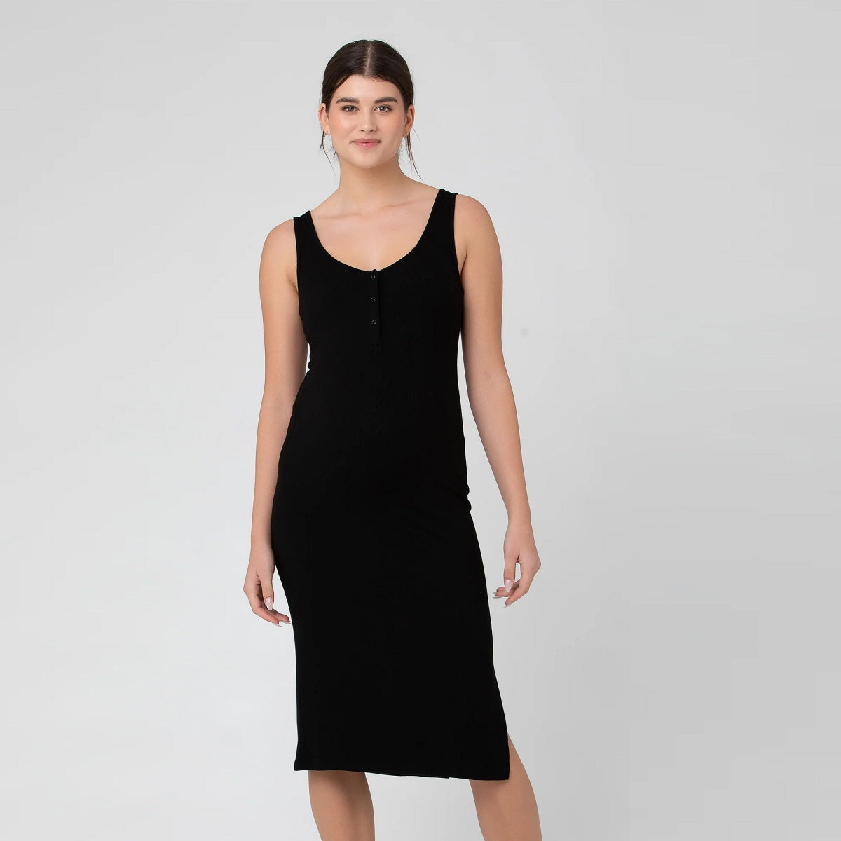 Ripe Penny Double Up Nursing Dress is a versatile two-piece cut from a high stretch rib knit. Designed to be worn together or separately with other items from your wardrobe. The tank dress has side seam split and a front placket for nursing ease. The top is long sleeve, cropped length with high neck band. Easy to wear at any stage; during and after pregnancy.