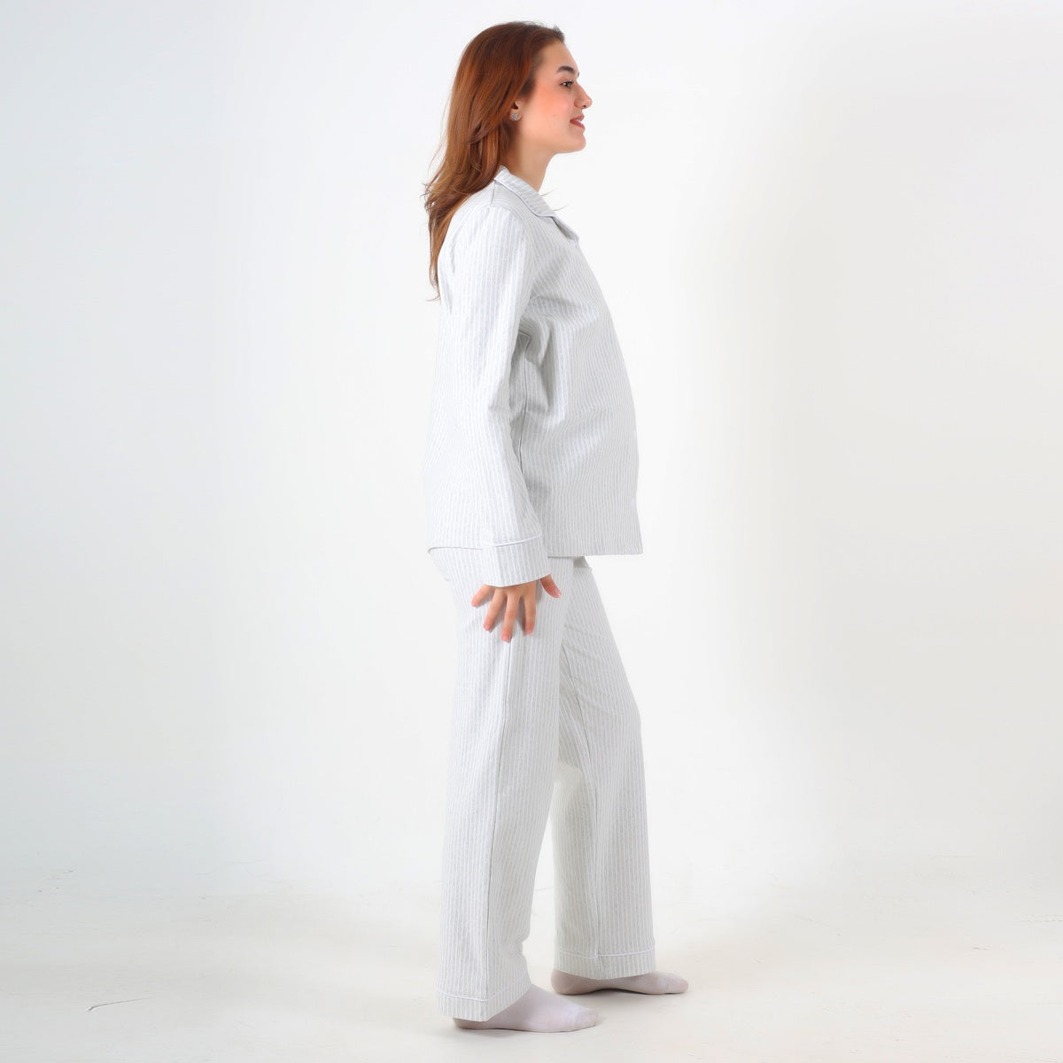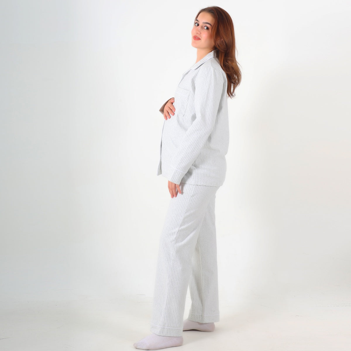 The pajama set you have been dreaming of. This comfy classic pajama set is made from premium cotton and is great whether you are pregnant, nursing, parenting, working from home, lounging.