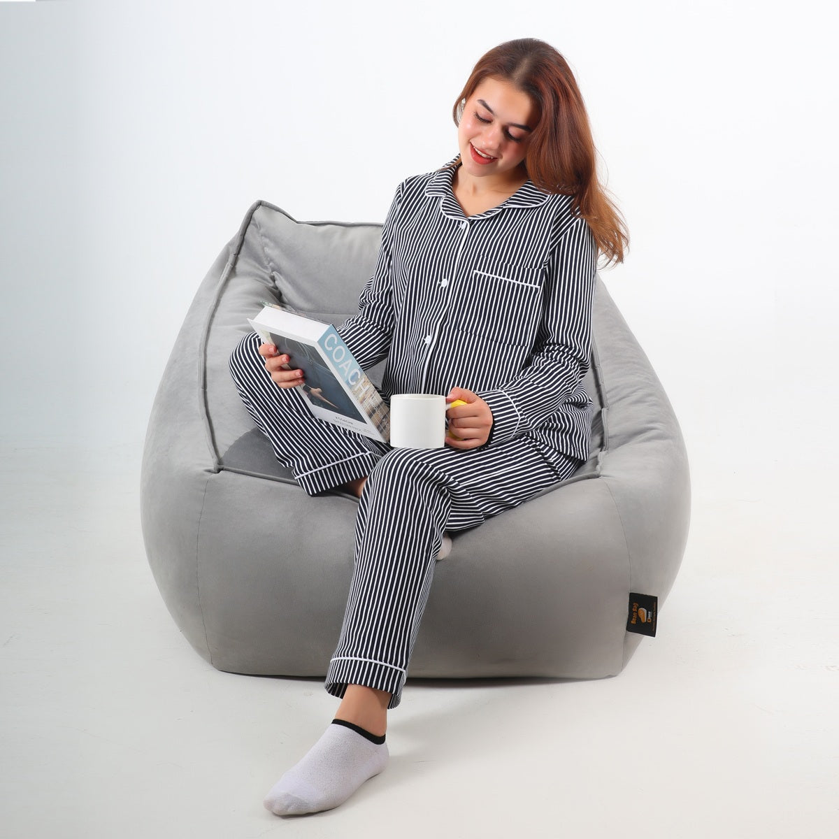 The pajama set you have been dreaming of. This comfy classic pajama set is made from premium cotton and is great whether you are pregnant, nursing, parenting, working from home, lounging.