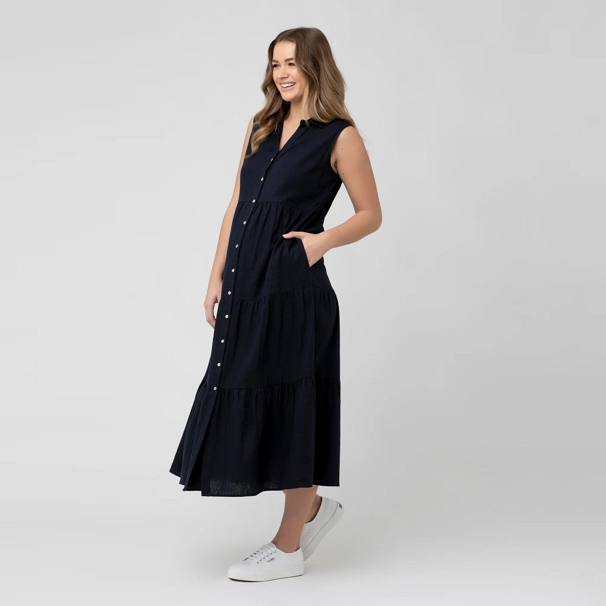Look no further than Ripe Maternity Tracey Tiered Dress for a classic summer outfit. Made from a soft linen viscose blend, this easy-to-wear sleeveless dress features a relaxed tiered skirt and a button up front that will provide easy