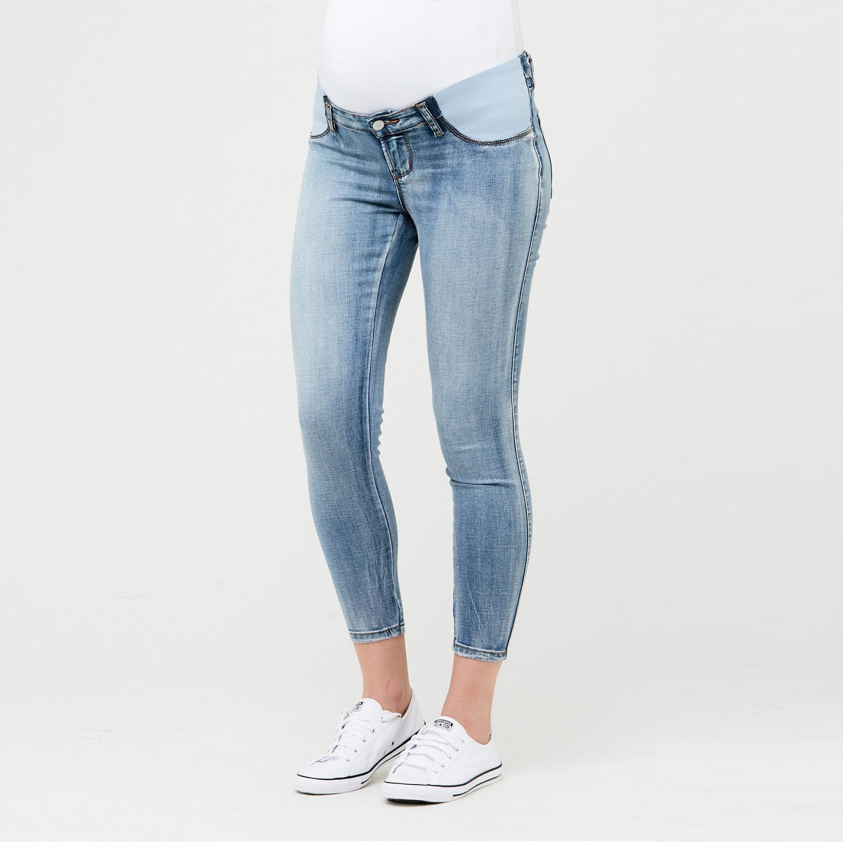 These skinny jeans feature the much-loved under-tummy waistband but in a cropped length. The new length grazes the ankle and allows your shoes some time to shine! Perfect to fit your growing tummy through all pregnancy stages and can be worn post-delivery. Lightweight and easy to wear.